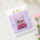 Bonito crianças cor-de-rosa festas de piquetes favorecem bolsas para uma festa de aniversario de meninas afro-americana. Possui belas bolinhas roxas em uma parede de quarto para crianças atrás de uma bela cama rosa e duas crianças pretas engraçadas tendo uma festa de sono divertida.