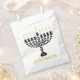 Estas bolsas favoritas simples e elegantes apresentam uma menorah floral branca e preta sobre um fundo branco com texto Hanukkah que é personalizável. Clique no botão personalizar para personalizar o texto neste design. Esses itens se coordenam com nossos outros itens na coleção. Perfeito para usar durante a estação de Chanucá.