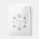 Este casamento no inverno prateado floco de neve a favor das bolsas apresenta flocos de neve modernos, prateados, falso brilho. Nomes e data são personalizáveis. Disponível em três cores diferentes de sacos.