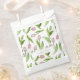 O design do produto apresenta um padrão de flores de tulipa rosa. Esta ilustração botânica com texto personalizado torna sacolas modernas e exclusivas para chá de noiva, casamento, aniversário, Páscoa, Dia das Mães e mais - OBRIGADO.