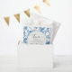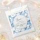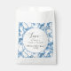 Azul e branco Toile floral e bolsas de presentes para pássaros para doces! Uma bela design de estilo Chinoiserie azul e branca com interpretações estilizadas de aves, flores, folhagem de folha e ramos de árvore acentuam o texto para decorar sua Mesa de deserto Chá de panela. Esta trabalho de arte foi pintada por Audrey Jeanne Roberts, uma artista e designer internacionalmente licenciada, copyright.