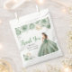 This quinceanera favor bag features a beautiful princess in a sage green ball gown with floral arrangements. This is perfect for a quinceanera birthday party.