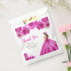 This Quinceanera favor bag features a beautiful princess in a hot pink ball gown with floral arrangements. This is perfect for a sweet Quinceanera party.