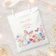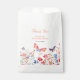 Pequeno saco-presente de chá de fraldas bonito com flores coloridas em rosa, roxo e laranja, borboletas e folhagem. Perfeito para primavera ou chá de panela de verão. As palavras podem ser alteradas para se adequarem aos seus próprios detalhes ou requisitos.