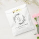 Bolsas de casamento personalizadas que apresentam caligrafia moderna com design de coroa floral estilo desenhado à mão.