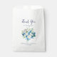 Esse clássico obrigado de flores brancas que você ama bolsas são perfeitos para um casamento na primavera. O elegante design floral apresenta marfim macio e rosas brancas e peônias com toques de flores azuis-rosadas-periwinkle e folhagem verde. Personalize as bolsas de tratamento com um obrigado curto que você envia, seus nomes e a data. Essas bolsas de tratamento podem ser usadas para uma recepção de casamento, chá de panela ou qualquer evento ou festa.
