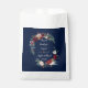 Este design apresenta lindas flores cor-de-água, cor-de-rosa-esbranquiçada, arrojadas, vermelhas, azuis-marinho, folhas verdes como uma estrutura elegante, setas quic com ouvidos como divisor, tudo sobre fundo azul-marinho. Na parte de trás, um quadro floral com noiva e iniciais nobres. Use a ferramenta Personalizar para adicionar suas informações. Itens correspondentes podem ser encontrados na minha Coleção de Flores Azuis da Borgonha.