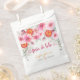 Realce o seu chá de bebê com nossos exquisitos sacos de lembrancinhas personalizados em espanhol, projetados para combinar perfeitamente com o tema da sua celebração. Estes sacos encantadores apresentam um arranjo deslumbrante de rosas cor-de-rosa, peônias e dálias, entrelaçados com folhagem de eucalipto verde suave e botões cor-de-rosa delicados. Adicionando um toque único, fatias vibrantes de laranja sanguínea com centros cor-de-rosa e laranja são cuidadosamente integradas ao design floral.