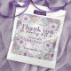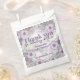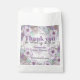 Esta é uma charmosa bolsa de favores de Chá de fraldas. O fundo do saco é enfeitado com um intrincado design floral desenhado à mão, criando um pano de fundo vibrante, mas delicado. As flores florescentes são detalhadas e variadas, pintadas em vários tons de roxo, lavanda, verde e branco. Este delicioso padrão floral dá um tom de elegância e celebração, perfeito para um chá de fraldas. No centro do prato, a frase "Obrigado" é elegantemente escrita em letras negrito. Essa frase oferece uma ligação temática entre as flores florescentes e o crescimento previsto da nova chegada, acrescentando um toque de espantalho à design. Abaixo deste texto central, há um espaço para personalizar o saco personalizado de acordo com as suas necessidades.