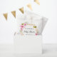 Um fundo branco decorado com uma falso estrutura geométrica dourada, flores cor-de-rosa e belas abelhões. Personalize e adicione o nome da múmia à abelha e uma data