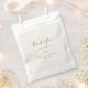 Esse obrigado de creme de vassoura de folha que você gosta de casamento bolsas são perfeitos para um casamento elegante. A design apresenta uma simples silhueta verde folha em laranja queimado no fundo de creme com estilo minimalista da boêmia do deserto. Personalize as bolsas de tratamento com um obrigado curto que você envia, seus nomes e a data. Essas bolsas de tratamento podem ser usadas para uma recepção de casamento, chá de panela ou qualquer evento ou festa.