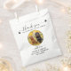 Obrigado por celebrar os meus humanos! Adicione o toque final ao seu casamento com essas bolsas de casamento fotógrafo personalizado e fofo. Perfeito para o seu casamento após festa e recepção, e como favores de casamento para os seus hóspedes. Personalize estas bolsas de favorecimento de cachorro fotográfico com sua foto favorita de casamento, seu cão de honra ou sua nova foto com seu cachorro, personalize com nomes e data. Eles serão os favoritos de todos os amantes de cães, mães de cães e pais de cães. Veja a nossa coleção de casamento para anúncios de casamento de cães e cartões salve a data de cães. COPYRIGHT © 2020 Judy Burrows, Black Dog Art - Todos Os Direitos Reservados. Foto do Script Elegante Moderno de Casamento de Pet Wedding Obrigado Bag Favorito