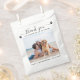 Obrigado por celebrar os meus humanos! Adicione o toque final ao seu casamento com essas bolsas de casamento fotógrafo personalizado e fofo. Perfeito para o seu casamento após festa e recepção, e como favores de casamento para os seus hóspedes. Personalize estas bolsas de favorecimento de cachorro fotográfico com sua foto favorita de casamento, seu cão de honra ou sua nova foto com seu cachorro, personalize com nomes e data. Eles serão os favoritos de todos os amantes de cães, mães de cães e pais de cães. Veja a nossa coleção de casamento para anúncios de casamento de cães e cartões salve a data de cães. COPYRIGHT © 2020 Judy Burrows, Black Dog Art - Todos Os Direitos Reservados. Foto Elegante Moderna Obrigado Pet Wedding Favor Bag