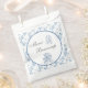 Aprecie seus convidados com este chá de fraldas francês Blue Chinoiserie a favor das bolsas! Apresentando flores elegantes e encanto de safra doce, elas são perfeitas para segurar doces, dobradiças, ou pequenos presentes. O texto personalizável permite adicionar um 'merci belcoup' pessoal a cada saco — um pequeno detalhe adorável para a sua celebração très chic!