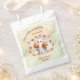 Duas pequenas abóboras estão a caminho, gêmeos bonitinhos do Dia das Bruxas Gênero Chá de fraldas Unisexo Neutro favorece bolsas com um adorável fantasma segurando duas abóboras bonitinhas no fundo do tema do outono com folhas do outono em tons verdes, laranja e castanhos claros. Personalize facilmente o texto. - Kate Eden Art