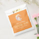 Lua amarela assustadora sobre fundo laranja e um fantasma assustador. Perfeito para uma cutena assustadora Boo! Personalize o nome do seu bebê para uma festa de primeiro aniversario de Dia das Bruxas Spooktacular.