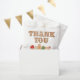 Esta bolsa de troca de bolachas apresenta uma coleção de biscoitos festivos de Natal com texto que diz "Obrigado" usando letras em forma de biscoito em um fundo branco. Você pode personalizar com seu nome de família. Coordena-se com a coleção de Bolachas de Natal.