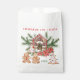 Este design apresenta ilustrações aquarelas da casa da cana-de-açúcar doce, do pão-de-gengibre e da gengibre, árvores de Natal brancas, pinhões e poinsettias.