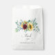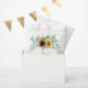 Neste estilo boho encantador, este alegre design de sacola de lembrança apresenta um buquê descuidado de girassóis amarelos e rosas burgundy com folhagem verde de eucalipto. O estilo transmite um charme rústico e casual e a felicidade e alegria que você sente quando se reúne para celebrar uma ocasião especial. Se o seu evento for realizado ao ar livre ou em um ambiente interno, este design funciona lindamente para uma variedade de ambientes. Ele faz uma boa sacola de lembrança para encher com produtos assados ou pequenos presentes e lembrancinhas para o seu evento.