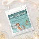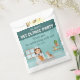 Celebrate your little animal lover’s special day with this girl veterinarian thank you favor bag designed by Destei. The design features a cute cartoon girl veterinarian standing behind a gray examination table with a puppy and a kitten. The illustration is placed at the bottom of the bag against a vibrant teal background.