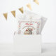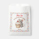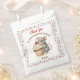 A cute girl's birthday party favor bag to stuff with goodies to say thank you to your guests, with a sweet mouse and cupcake theme. Pink, beige and cherry red sprinkles on a cute vanilla cupcake being held by a watercolor mouse!