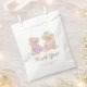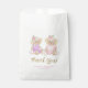 Diga "Obrigado!" com esse chá de fraldas personalizado a favor das bolsas. Estas bolsas favoritas são personalizáveis: Você pode editar o texto clicando em "personalizar este modelo". Mande seus convidados de festa para casa com essas bolsas bonitas e giras que apresentam uma ilustração pintada manualmente de ricos e ursos elegantes tendo uma festa de chá completa com mini xícaras de chá e capas florais.