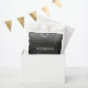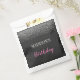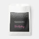 O brilho da relva de prata brilha no saco de favores de aniversário com escrevendo branco e rosa e fundo preto. Você pode personalizar esta bolsa de favoritos com seu nome e também alterar a cor do texto e o estilo da fonte usando a opção personalizar.