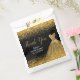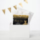 A beautiful gold themed elegant watercolor dress gown on a black background with faux glitter at the top and bottom of the card.