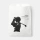 O design destas bolsas para lembrancinhas de despedida de solteiro apresenta um fundo branco com uma impressionante silhueta preta de um golfista. O clima deste design é de camaradagem e aventura, prometendo uma experiência inesquecível e divertida de despedida de solteiro. Esta bolsa de lembrancinha é para um evento de despedida de solteiro, uma viagem temática de golfe. É uma oportunidade para o noivo e seus amigos mais próximos desfrutarem de um dia no campo de golfe seguido de festividades noturnas, celebrando o próximo casamento do noivo com estilo. Perfeito para golfistas, será uma maneira ideal de criar memórias duradouras. Perfeito para entusiastas do golfe e aqueles que desfrutam de atividades ao ar livre. A bolsa de lembrancinha foi projetada para atrair o público, prometendo uma experiência inesquecível de despedida de sol
