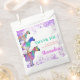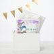 Obrigado de festa de aniversário colorida de cabra d'água que você favorece as bolsas. Arte animal colorida com design de abertura de água, ideal para uma festa de aniversário temática de fazenda animal. As palavras "Obrigado por celebrar o meu aniversário comigo" com um nome de criança personalizado. Tipografia colorida moderna que é fácil de personalizar usando o modelo. Arte original da artista Catherine Sweetman