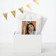 Bolsa de favores de graduação moderna com o nome do formando em um roteiro branco em negrito na vertical ao lado esquerdo, com o ano da aula e o nome da escola na parte inferior, sobre sua foto favorita. Estas bolsas favoritas são perfeitas para um formando segundo grau feminino e são uma forma excelente de adicionar um toque pessoal aos seus favoritos para festas.