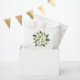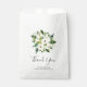 Bolsa de graduação em forma de floreio com um buquê de rosas brancas pintadas a aquarelas e verde pintadas à mão com "Obrigado" em letra elegante e "Para Celebração (Nome) de Graduação". Estas bolsas bonito são perfeitas para um formando de menina e são uma maneira excelente de adicionar um toque pessoal à sua festa de formatura.