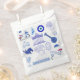 A minimalist design of Greek elements in shades of blue and white, perfect for travel lovers.