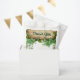 Comemore a sua Rua, casamento do Dia do Patrick com um toque de charme de safra! Esta bolsa de favores irlandesa mostra uma combinação deliciosa de belos verdes e listras elegantes. A parte superior do saco apresenta madeira com verde e a frase sincera 'Obrigado', enquanto uma borda de listras verdes pálidas adiciona um toque de na moda. Embora não apresente o design do trevo tradicional, o verde-luxuoso e o uso da fonte Celta fazem desta Rua. O cartão de casamento do Dia do Patrick é um espetacular display de beleza e elegância.