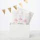 Chá de fraldas de menina de estrela reluzente brilhando, moça de , com nuvens cor-de-rosa giras e estrelas ouros sobre cordas, sobre um fundo branco. Projetado por Thisnotme©