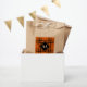 Amostra moderna de tartã laranja e preto de halloween. Texto personalizado e monograma.