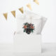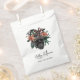 Um design de Dia das Bruxas Chico assustador, com uma ilustração do crânio floral tropical tocado com flores laranja e peludas e folhagem verde da selva, num fundo negro enfumaçado. Personalize este saco de favoritos único e elegante do Dia das Bruxas com duas linhas de texto personalizado.