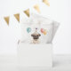 Cute pug birthday illustrations featuring playful pugs celebrating a party. Perfect for pug lovers, dog parents, and pet lovers looking for fun dog birthday designs and gifts.
