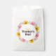 Happy Teacher's day favor bag decorated with wild colorful flowers on beige background.