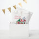 Gnomo natalino de aquarela, de cor branca, com árvore de Natal e lanterna sobre uma coroa de névoa, poinsettia