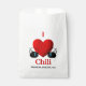 Boa design para o amante do chili. Um coração com pote de pimenta em ambos os lados, completo com uma fita azul.