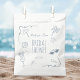 Essas ilustrações de doodle de praia desenhadas à mão em sacolas de brindes para chá de noiva apresentam um fundo branco limpo decorado com doodles em azul desbotado à beira-mar - ondas, conchas, estrelas-do-mar, palmeiras, óculos de sol e sutil acento ondulado. No centro da bolsa está o texto personalizável "Chá de Noiva", com um espaço para o nome da noiva acima e a data do evento abaixo. Todo o design é editável, permitindo que você combine as cores e o texto com o seu chá de noiva perfeitamente, enquanto oferece aos convidados uma apresentação elegante e praiana.