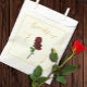elegância do eterno: Casamento de rosas vermelhas minimalista tradicional com tipografia de guião dourada e fundo de marfim.