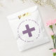 Para o Kit de Emergência (também conhecido como Kit Hangover) colocar um saco de boas-vindas de casamento de destino, com algum dentro de remédio. Tem uma cruz no centro e um fazer de texto arquivado ao seu redor. Por cima, há a mensagem "Na doença e na saúde" e, por baixo, há os nomes da noiva e do noivo e a data. O texto está em pequenos bonés. O texto e a cruz são roxos empoeirados, o fundo é branco.
