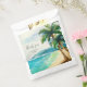 Obrigado seus convidados para comemorar seu dia especial com você com essas bolsas de casamento que apresentam um paraíso de ilhas aquáticas de palmeiras exuberantes e uma lagoa de turquesa tranquila. Perfeito para um casamento de praia ou destino tropical. Arte da KL Stock.