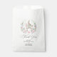 Saco elegante e na moda com coroa verde macia, flores cor-de-rosa pastel e roxo e um belo coelho montando um doce borrego de bebê. Clique no botão "personalizar mais" se quiser reorganizar e formatar o estilo e a posição do texto.
