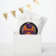 Truque de Chapéu Roxo de Gato de Gato Laranja ou Trate a Bag do Favor do Halloween. Um desenho de um gato laranja giro com um chapéu roxo e laranja. Faça um truque ou trate o texto sobre um fundo laranja.