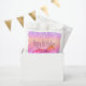 Um unicórnio mágico, cor-de-rosa lavanda, sombreado com estrelas numa lavanda ombre e num pano de fundo cor-de-rosa completo com brilho cor-de-rosa e lavanda, onde abaixo você pode personalizar seu evento. Vibrações de sonho feminino.