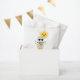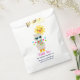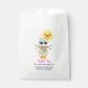 Favor bolsas com uma lama legal vestindo óculos escuros. Vestido num lenço listrado colorido e botas divertidas. Um sol amarelo brilhante com um rosto kawaii feliz no fundo. Triângulos brancos e coloridos rodeiam esta divertida lhama amorosa.