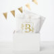Saco de favor apresenta moldura botânica desenhada à mão em ouro moderno com letra B botânica no centro. Personalize com o nome do casal e / ou data ou outra mensagem